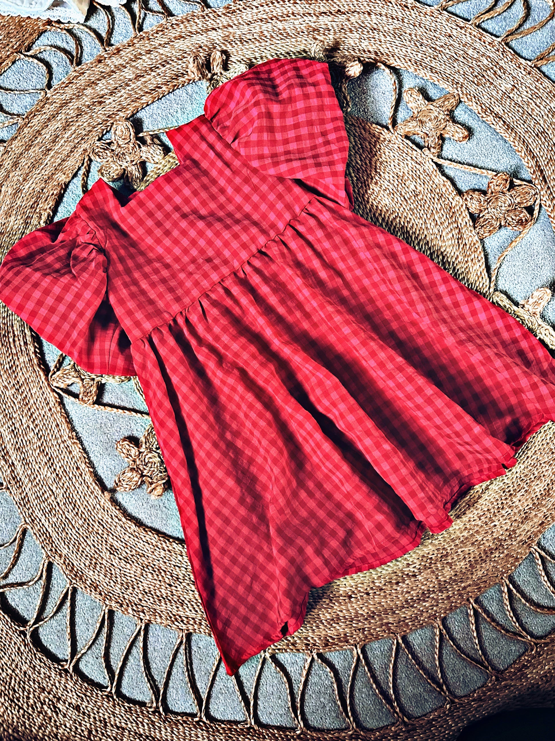 Meet Poppy the gingham dress of dreams! Featuring an open-back with bow ties, oversized puff sleeves, and the cutest gingham print, made for twirling in style!
